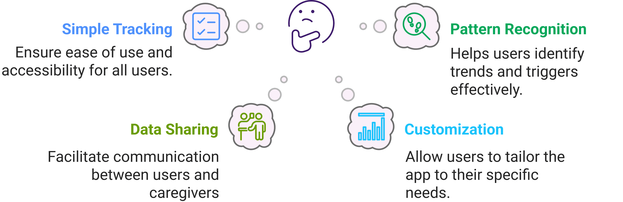Guided by our personas, users journey, and valuable insights from our research, we found users need simple, reliable seizure tracking, with pattern recognition and trigger insights. They want to share data with caregivers, customize what they track, and avoid complex inputs.